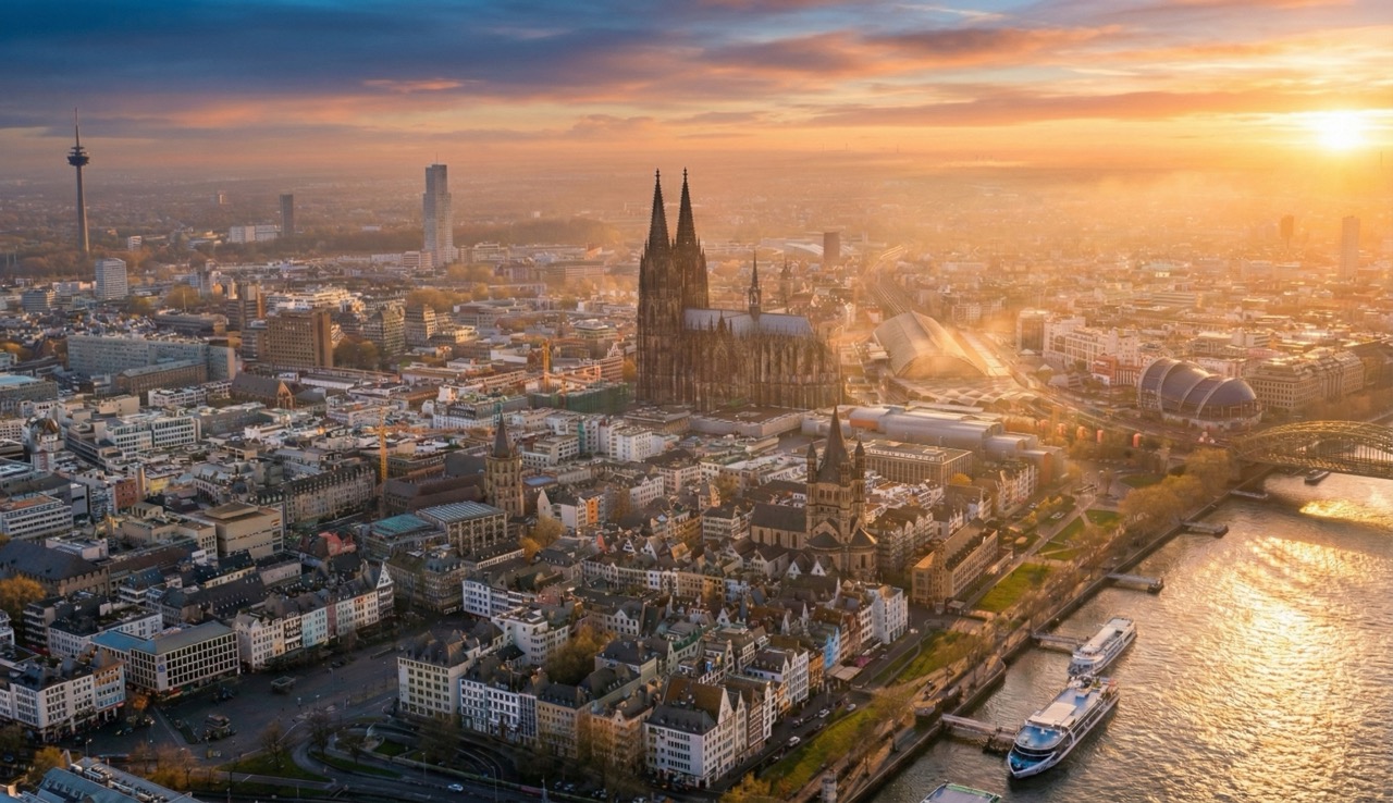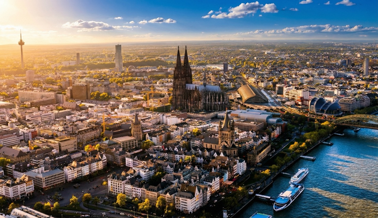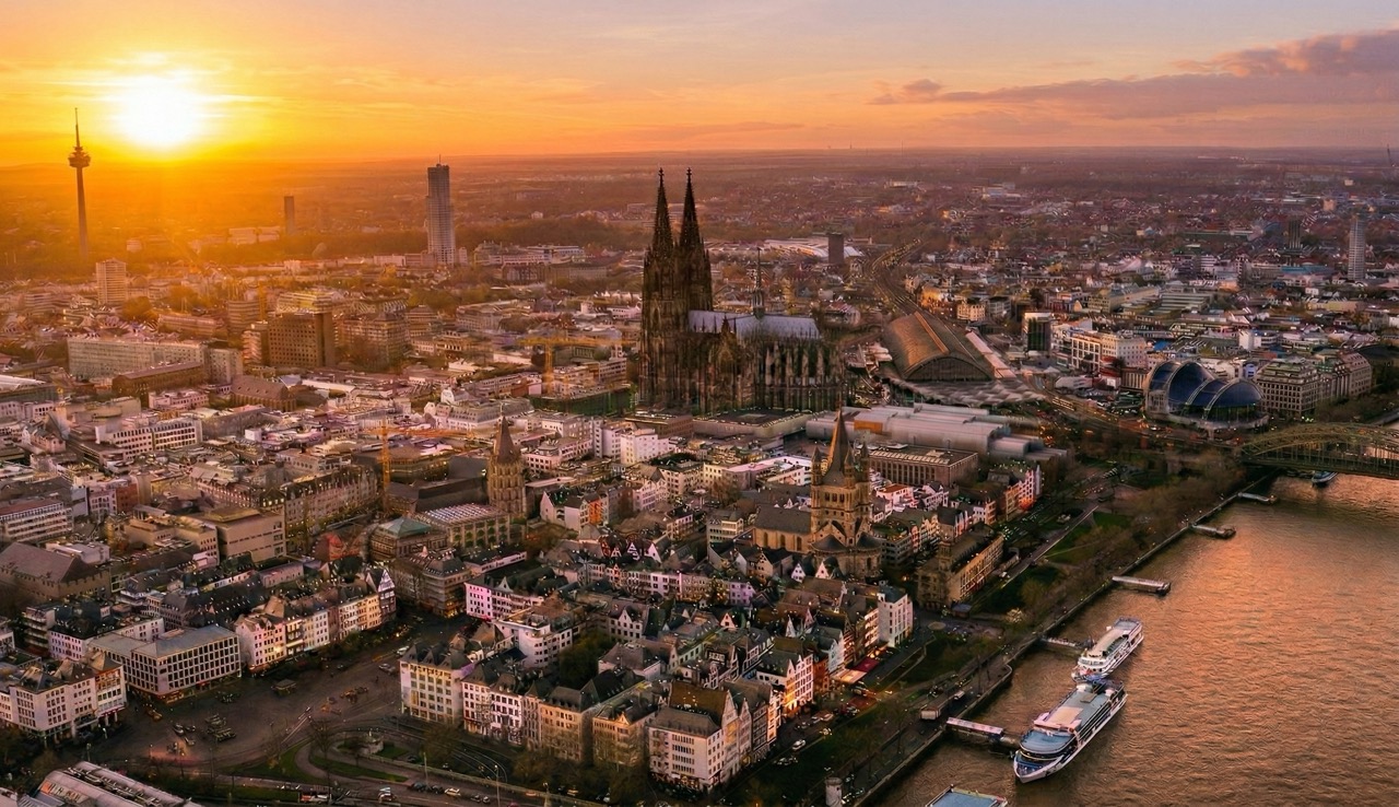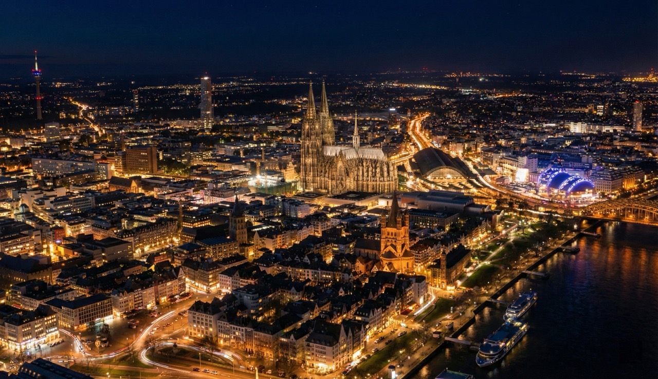 This project began with a single aerial photograph of Cologne. To bring it to life, I generated seven distinct lighting passes ranging from the deep blues of 2 AM, the beatiful sunrise, the bright mid-day sun of 11 AM, stunning sunset