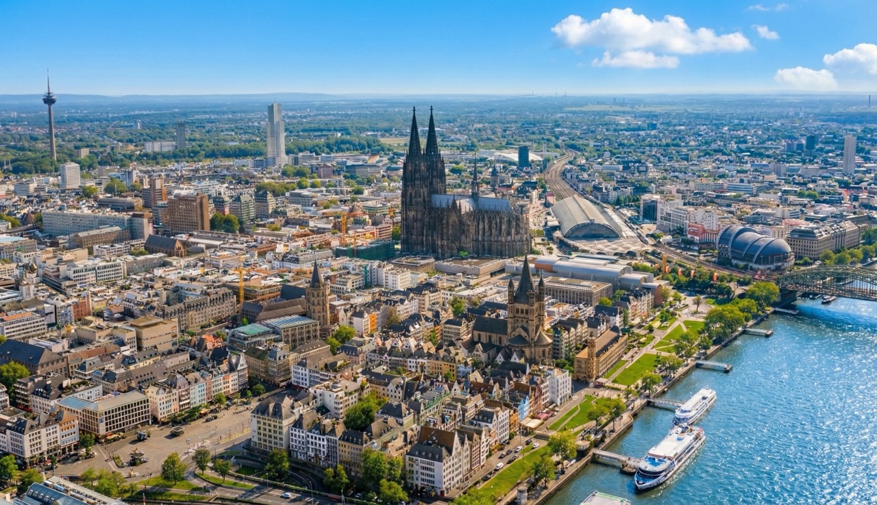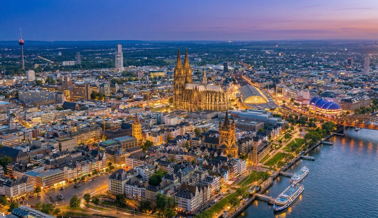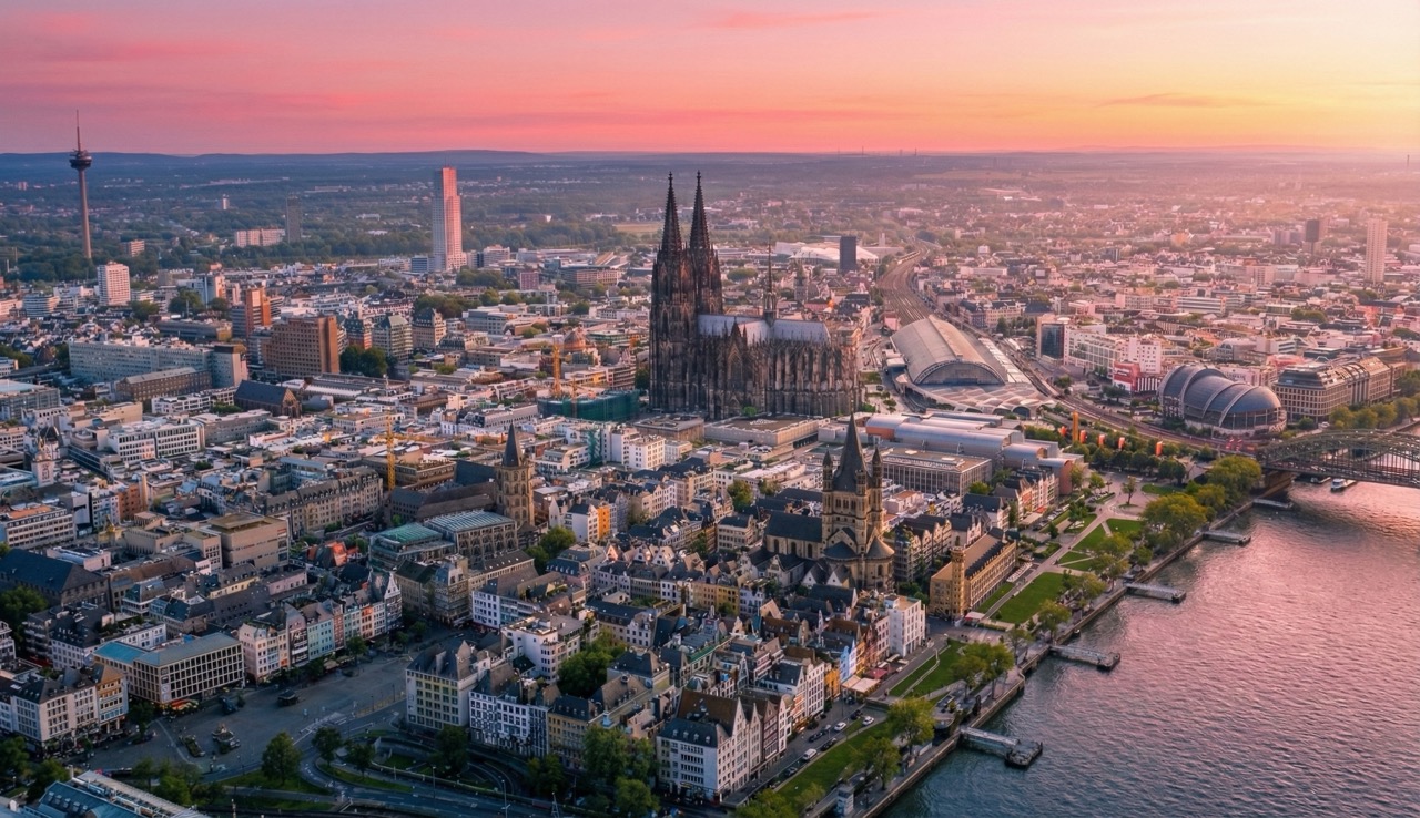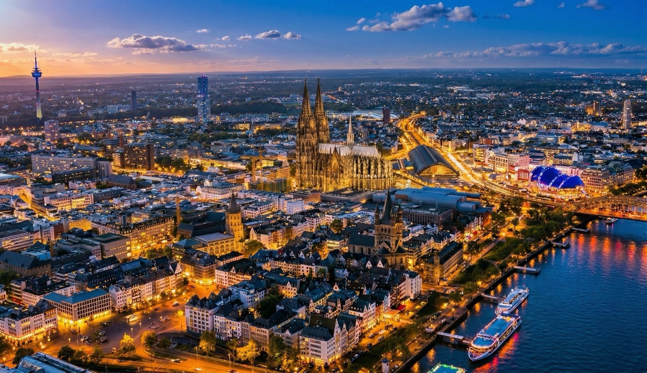 This project began with a single aerial photograph of Cologne. To bring it to life, I generated seven distinct lighting passes ranging from the deep blues of 2 AM, the beatiful sunrise, the bright mid-day sun of 11 AM, stunning sunset